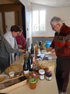 C’est en toute simplicité que chacun vient, avec son pot de confiture, de pâte à tartiner, avec du cidre ou du jus de pommes.